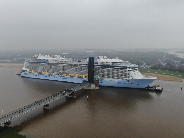 | MIAMI – Royal Caribbean International, the world’s largest cruise line, officially took delivery of the 26th ship in its fleet, Spectrum of the Seas, in a ceremony held today in Bremerhaven, Germany. Royal Caribbean Cruises Ltd. Chairman and CEO Richard D. Fain and President and CEO of Royal Caribbean International Michael Bayley received the new ship from Meyer Wert Yard’s Managing Partner Bernard Meyer and Meyer Werft Yard’s Managing Director Tim Meyer at the official handover ceremony. The first in the Quantum Ultra class of ships, Spectrum will homeport from Shanghai starting June 2019.